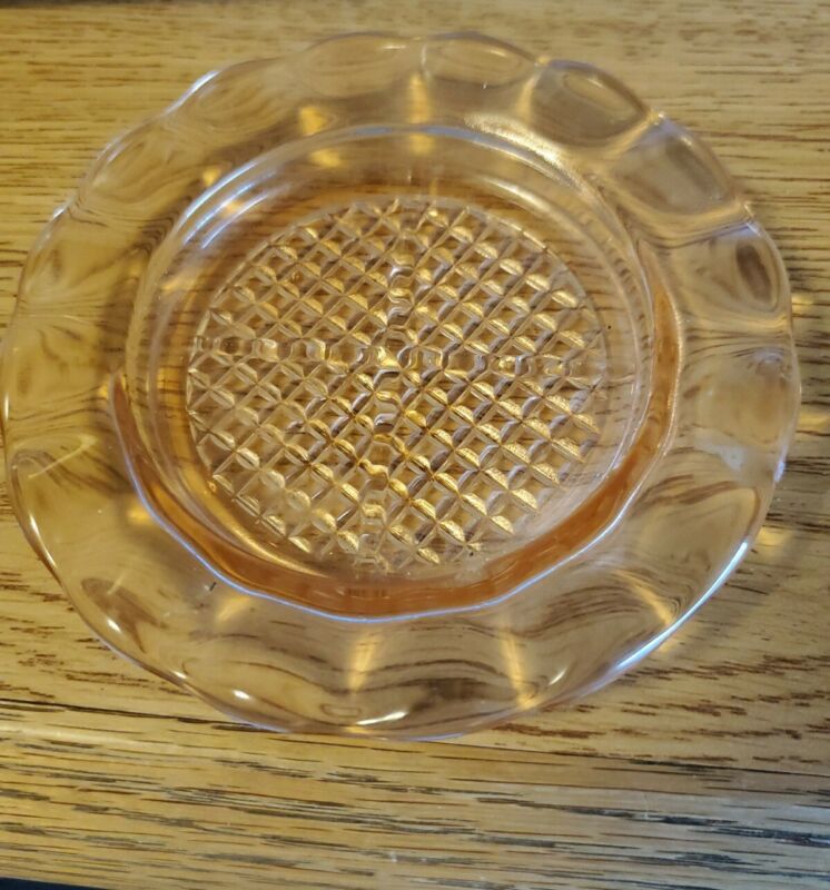 Title (ebay affiliate link): Vintage Round Ashtray Pink tiny squares scalloped edges Depression Glass