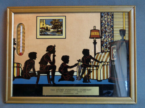 Title (ebay affiliate link): Old Fayetteville Furniture Store Ad Framed Silhouette Kids Early TV Thermometer