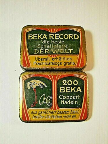 X Rare Ad Gramophone Needles Tin BEKA 1910 Flamingo Phono Pick-Up Nadeldose