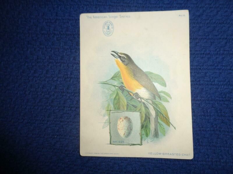 Title (ebay affiliate link): 1899 SINGER MANUFACTURING CO. VICTORIAN TRADE CARD: YELLOW-BREASTED CHAT