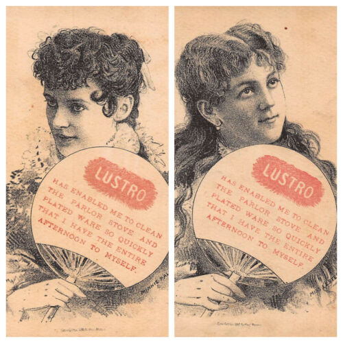 Title (ebay affiliate link): Lustro Stove and Plate Ware Cleaner 2 Victorian Trade Cards Women Holding Fan