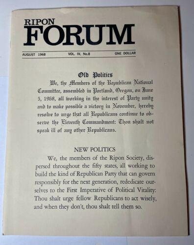 Title (ebay affiliate link): Ripon Forum August 1968. When Republicans Had An Internal Debate And Were Smart