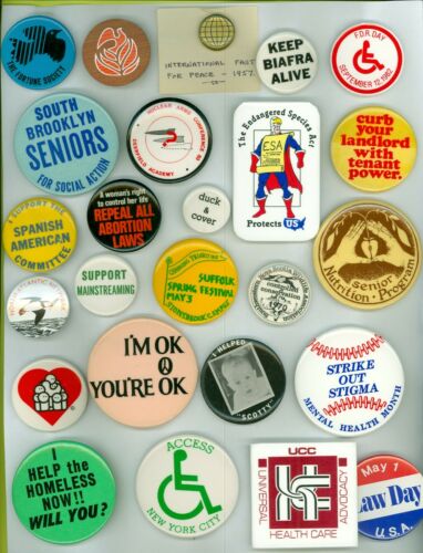 Title (ebay affiliate link): 25 Social Justice Protest Pinback Buttons The Fortune Society 1960s-90s Biafra