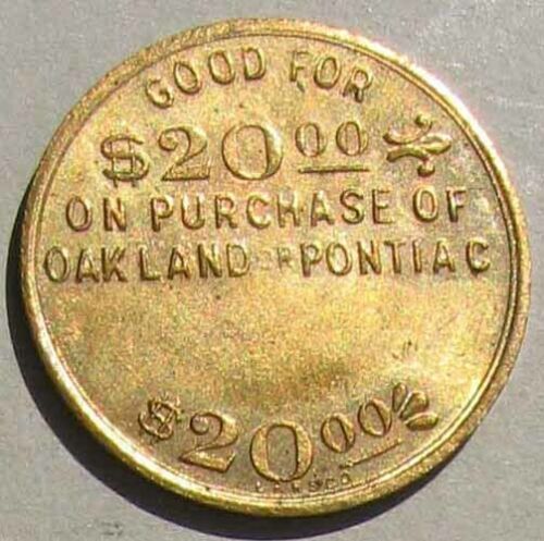 RARE NOS TEENS-1920s PONTIAC CHIEF OF SIXES & OAKLAND $20 DISCOUNT TOKEN #F361
