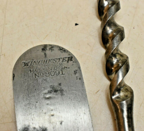L798- 2 Vintage Winchester Tools - Block Plane Iron No 3091 & Auger Bit Size 13