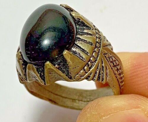 Ancient Greek SILVER RING WITH BLACK STONE - INTAGLIO (INNER 21mm)