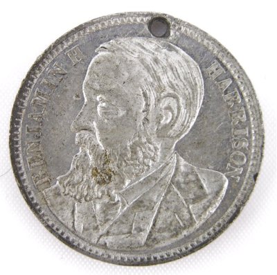 Title (ebay affiliate link): 1888 BENJAMIN HARRISON SILVER GILT CAMPAIGN TOKEN MEDAL