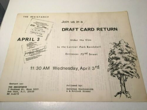 Title (ebay affiliate link): FLYER: "JOIN US IN A DRAFT CARD RETURN" Under The Elms Central Park Bandshell
