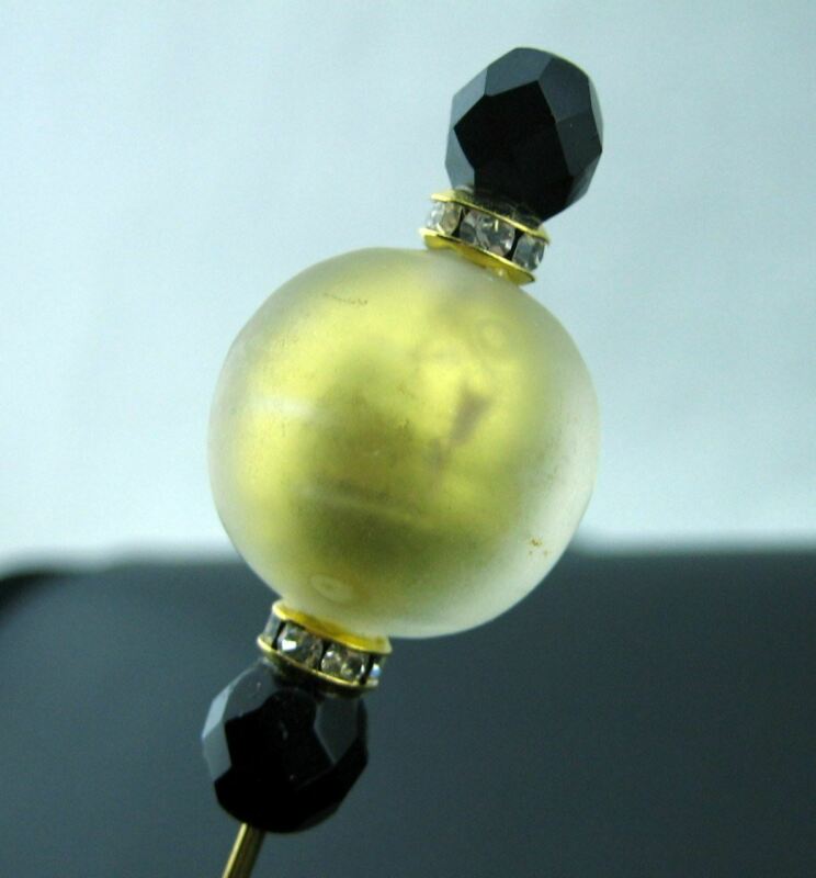 Title (ebay affiliate link): Antique Depression Glass Iridescent Frosted Black Crystal Rondell Stick Pin