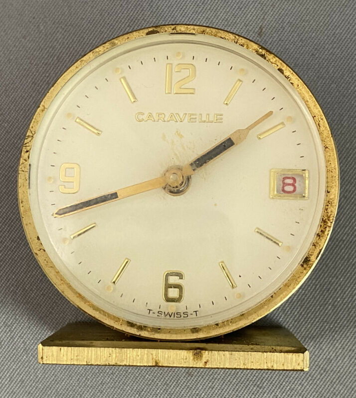 Title (ebay affiliate link): Antique Art Deco CARAVELLE SWISS 7 JEWELS WATCH DATE ALARM MINIATURE CLOCK