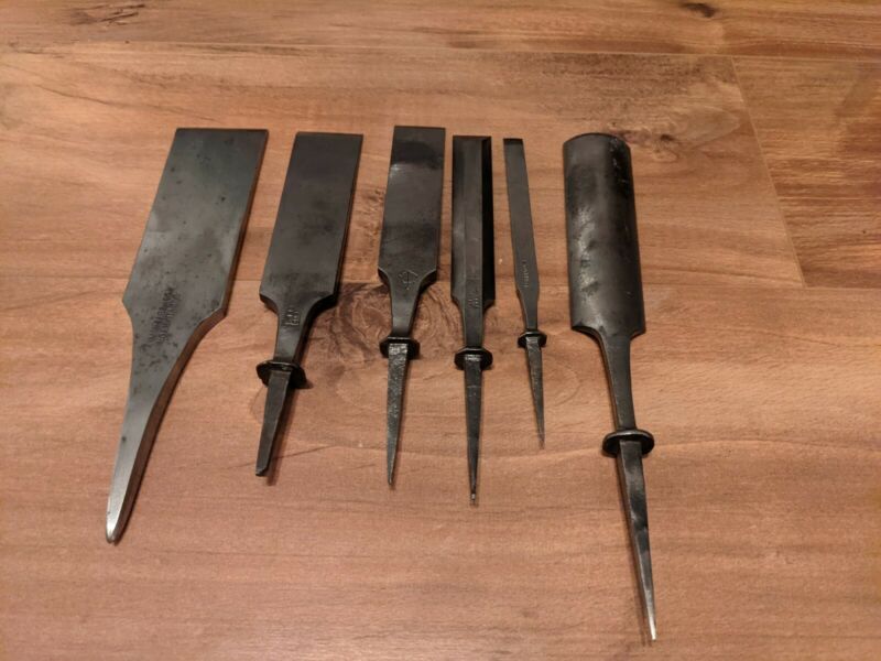 Title (ebay affiliate link): Lot Of 6 Quality Vintage Antique Woodworking Tanged Chisel Steels Blades
