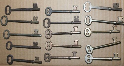 Vintage lot of 15 skeleton barrel door cabinet clock old lock keys 3" - 3.5"