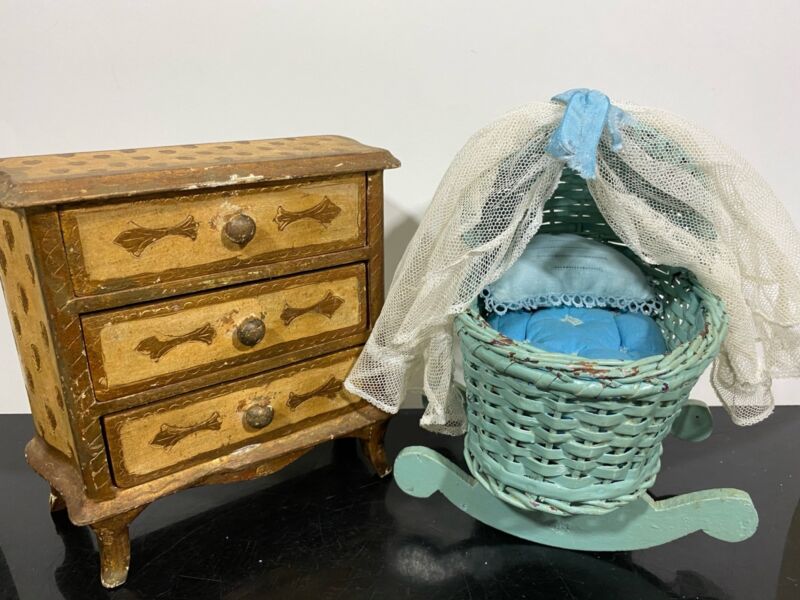 Title (ebay affiliate link): Vintage Wooden Doll Size Dresser & Rocking Cradle Furniture