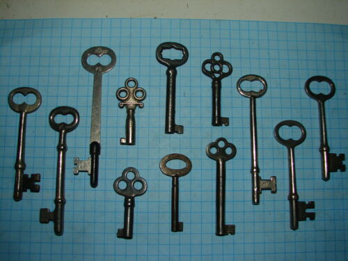 Title (ebay affiliate link): LOT OF 12 ANTIQUE SKELETON, FURNITURE, BARREL, CABINET AND OLD LOCK KEYS