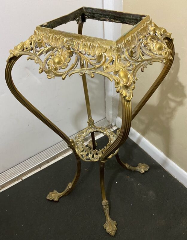 13LB Antique Neoclassical Brass Ornate Baroque Plant Stand Side Table Furniture