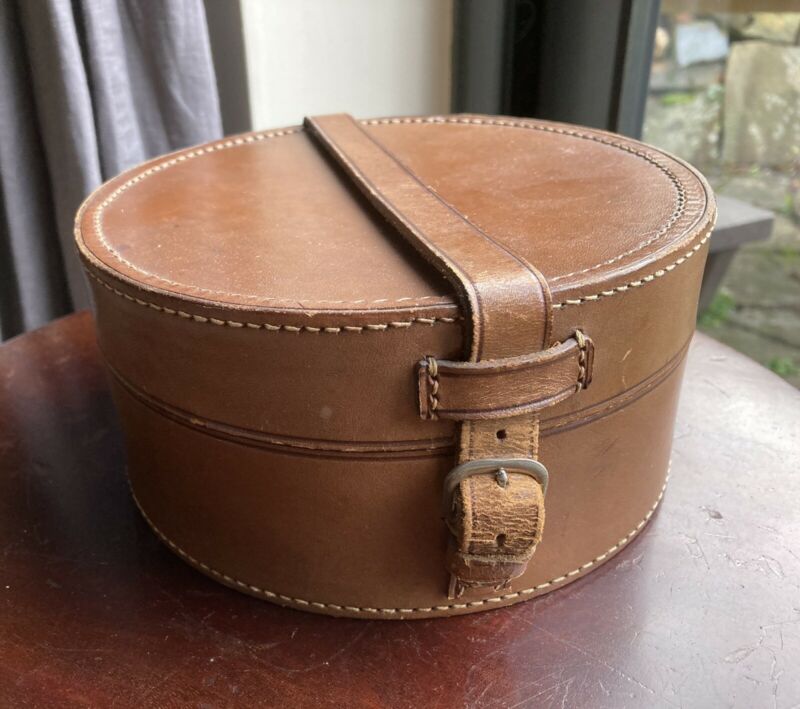 Title (ebay affiliate link): Antique Brown Leather Round Collar Box Storage Box