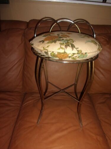 Title (ebay affiliate link): NEAT! Mid Century VTG Brass Finish Vanity Chair Stool w cushion