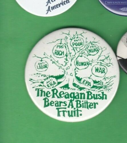 Title (ebay affiliate link): Anti Reagan Bush button pin 1984 Democratic National Convention- Mondale Ferraro