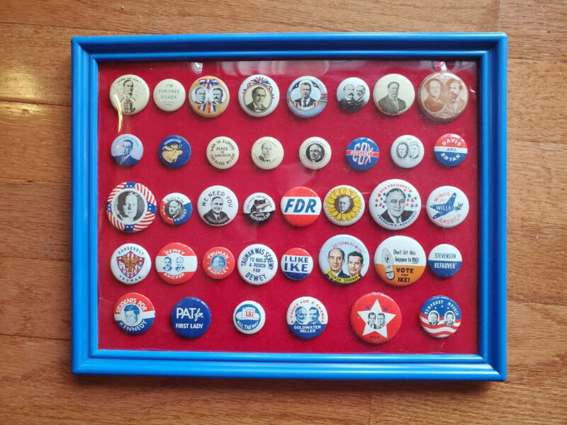 Title (ebay affiliate link): 38 Political Campaign Button Pins (Reproduction from American Oil in 1972) Frame