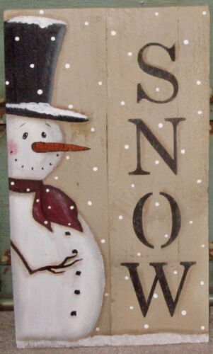 *~*PRIMITIVE*~* HP FOLK ART PRIM SNOWMEN *~* SNOW *~* WINTER *~* RECLAIMED WOOD