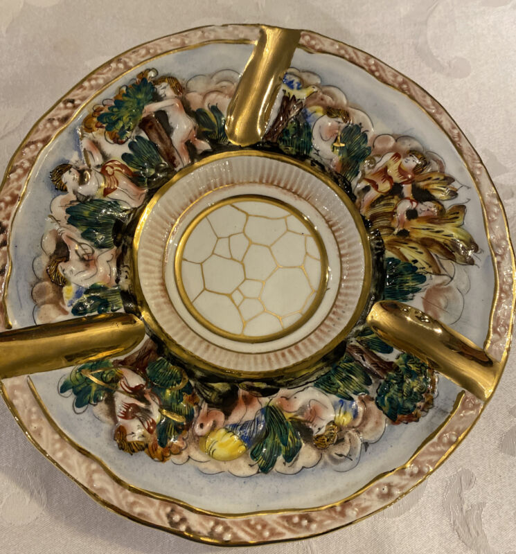 Title (ebay affiliate link): Capodimonte 8" Dish Gilded Hand Painted With Cherubs Made In Italy