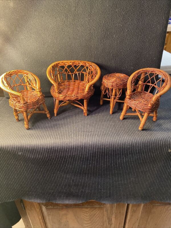Title (ebay affiliate link): 4 Pc Set of Vintage Wicker Rattan, Barbie Sized Doll Furniture