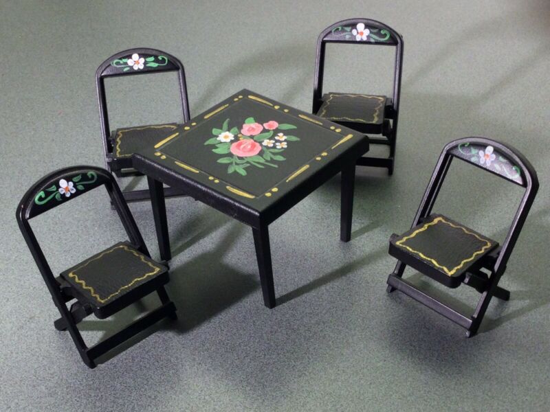 Renwal Pennsylvania Dutch Folding Card Table Set Vintage Dollhouse Furniture