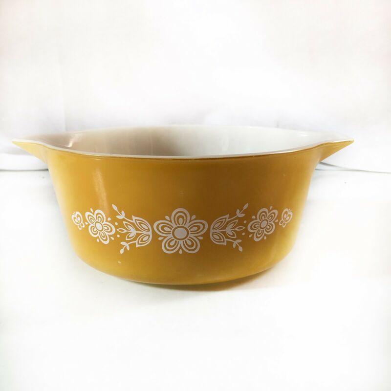 VINTAGE PYREX YELLOW FLORAL 2 1/2 QT OVAL CASSEROLE DISH