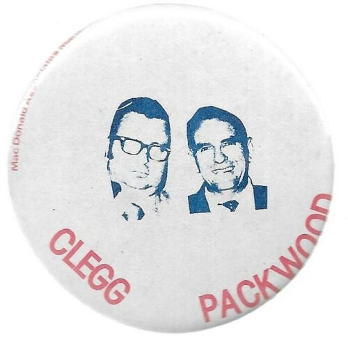 CLEGG AND PACKWOOD UNUSUAL THIRD PARTY POLITICAL CAMPAIGN PIN