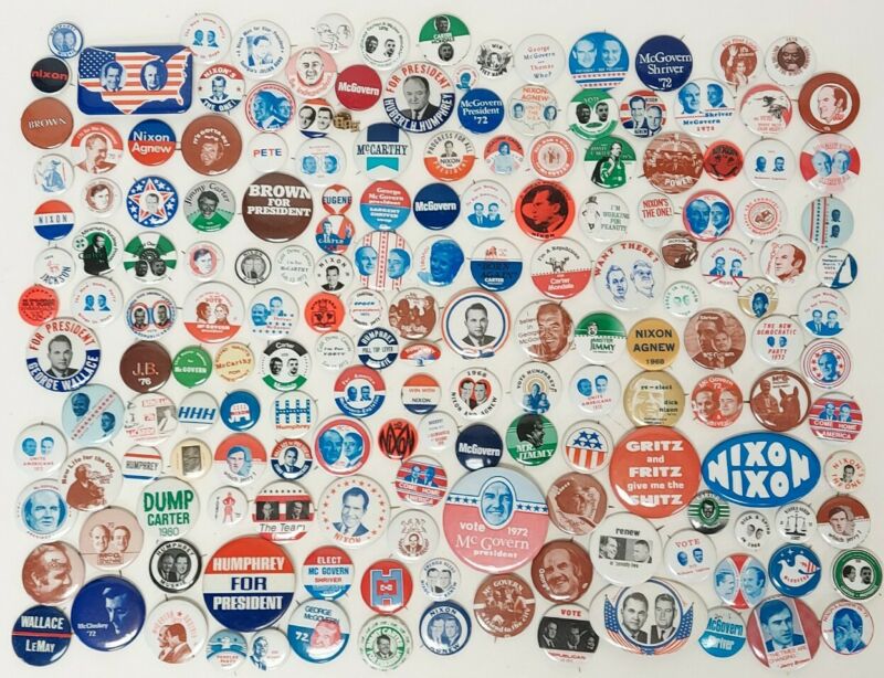 Title (ebay affiliate link): Huge Lot of 171 Original 1968-1972 Presidential Campaign Pinback Buttons