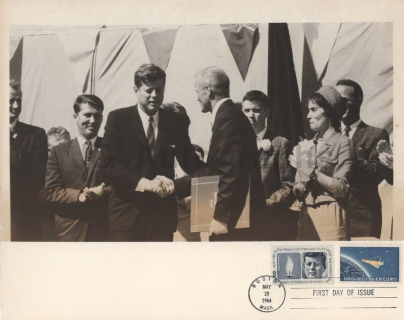 Title (ebay affiliate link): John F. Kennedy - 1964 Vintage 8x10 Photo w/ Commemorative First Day Stamp