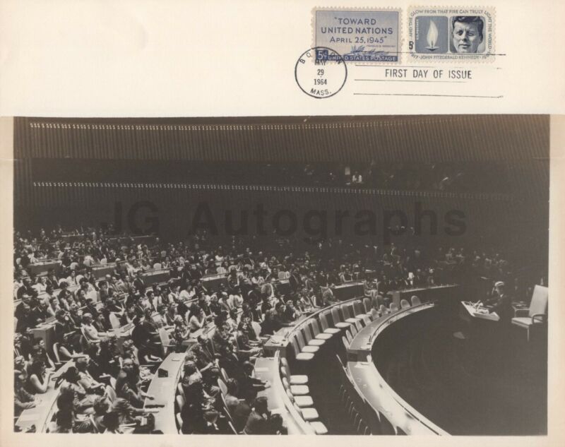 Title (ebay affiliate link): John F. Kennedy - 1964 Vintage 8x10 Photo w/ Commemorative First Day Stamp