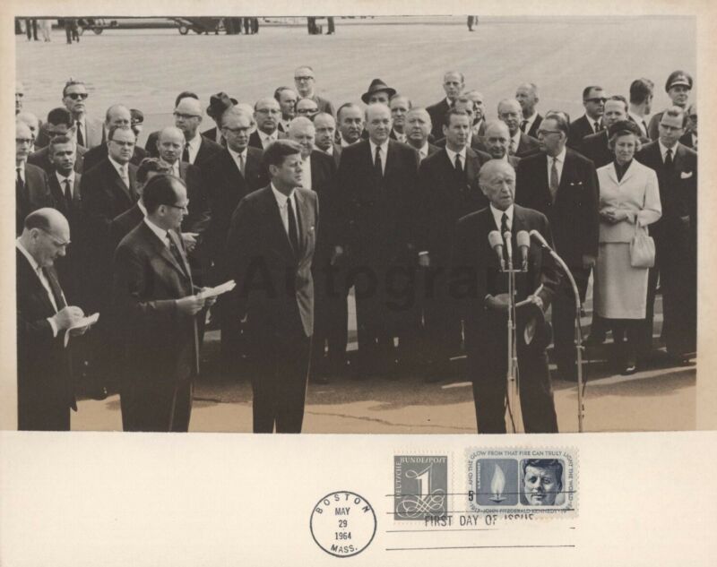 Title (ebay affiliate link): John F. Kennedy - 1964 Vintage 8x10 Photo w/ Commemorative First Day Stamp