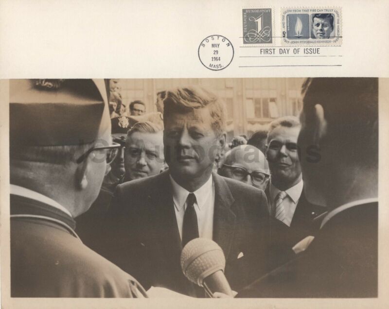 Title (ebay affiliate link): John F. Kennedy - 1964 Vintage 8x10 Photo w/ Commemorative First Day Stamp