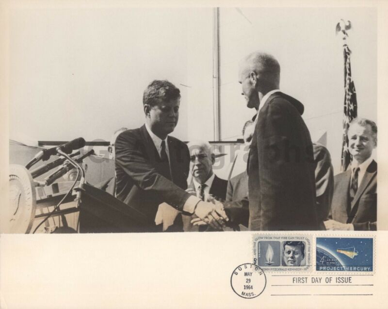 Title (ebay affiliate link): John F. Kennedy - 1964 Vintage 8x10 Photo w/ Commemorative First Day Stamp