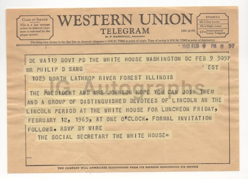 Title (ebay affiliate link): Lyndon B. Johnson - 1965 Telegram from White House Social Secretary