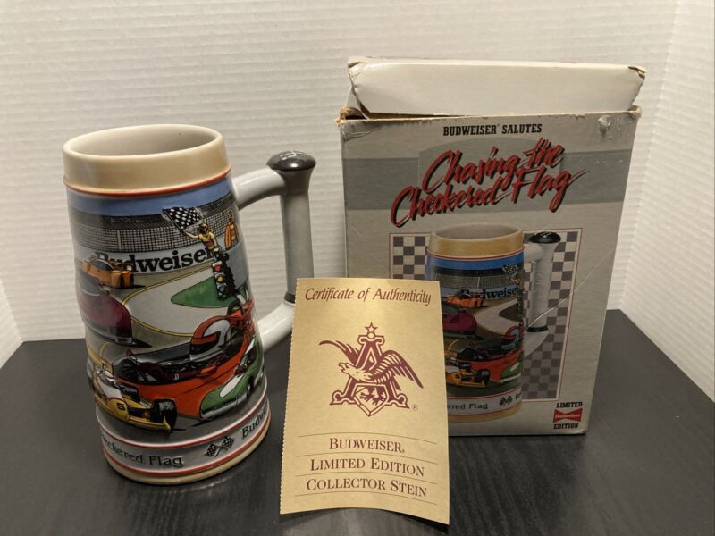 Title (ebay affiliate link): 1990 Anheuser-busch Budweiser Chasing The Checkered Flag Mug And Certificate