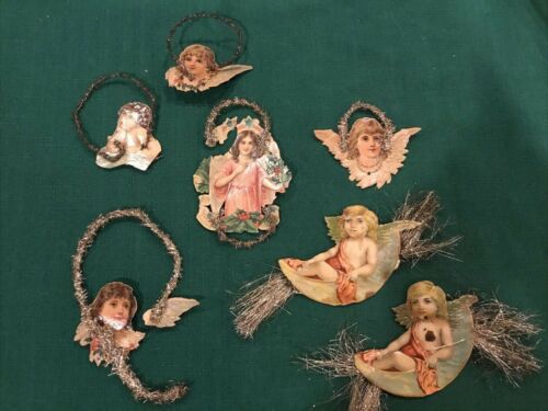 Title (ebay affiliate link): Lot 7 Antique Die Cut Tinsel Lithograph Christmas Ornaments-Children Angel