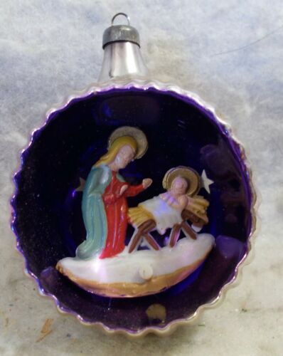 VINTAGE GLASS DIORAMA ORNAMENT WITH MARY & JESUS