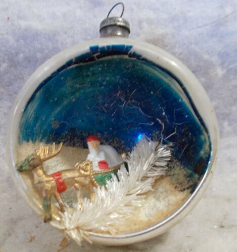 VINTAGE GLASS DIORAMA ORNAMENT WITH SANTA