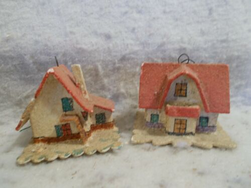 VINTAGE VINTAGE JAPANESE GLITTERED CARDBOARD HOUSE ORNAMENTS