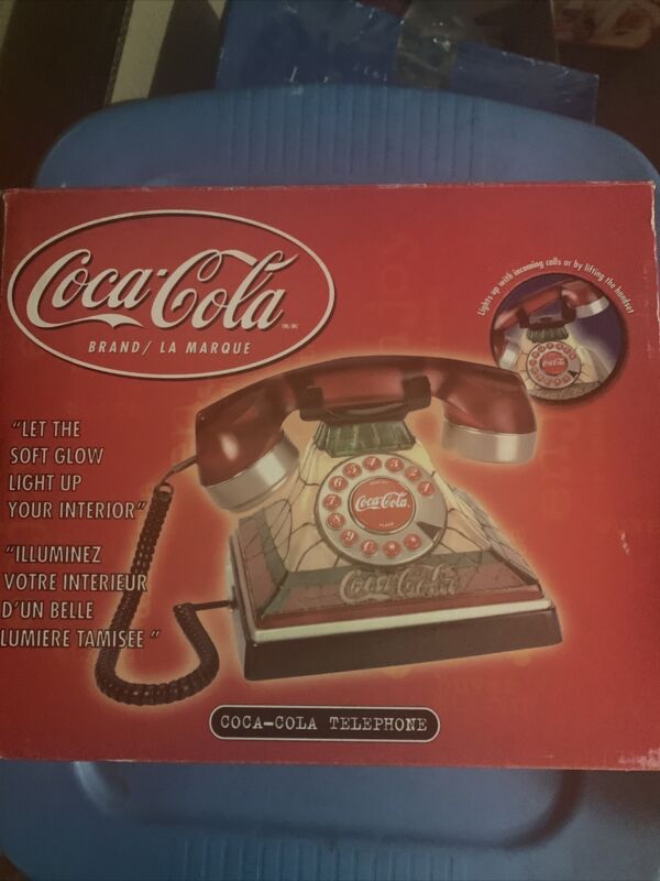 Title (ebay affiliate link): NEW IN BOX COCA COLA LIGHT UP STAINED GLASS TELEPHONE PUSH BUTTON GLOWS VINTAGE