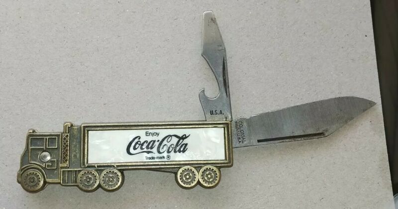 Title (ebay affiliate link): Vintage Colonial Coca Cola Delivery Truck Knife /Bottle Opener. Brass-Pearl?