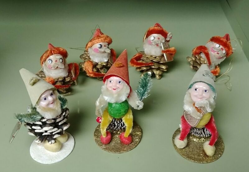 Title (ebay affiliate link): 7 VINTAGE PINE CONE PIPE CLEANER SANTA CHRISTMAS ORNAMENTS