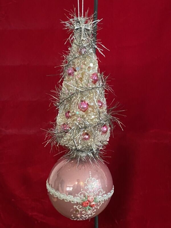 Title (ebay affiliate link): Vintage Pink Rose Mercury Glass Bulb Bead Tinsel Jewel Christmas Tree Ornament