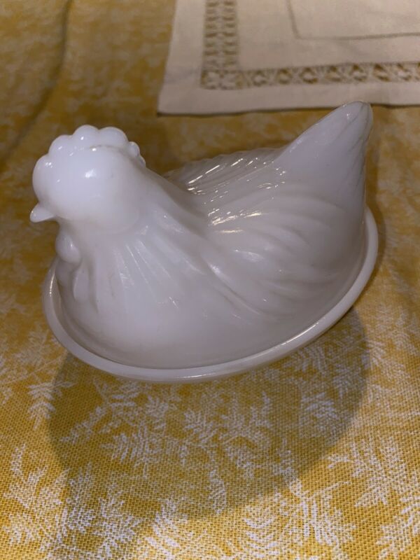 Title (ebay affiliate link): Vintage Hazel Atlas Milk Glass Hen Sitting On Nest Candy Dish