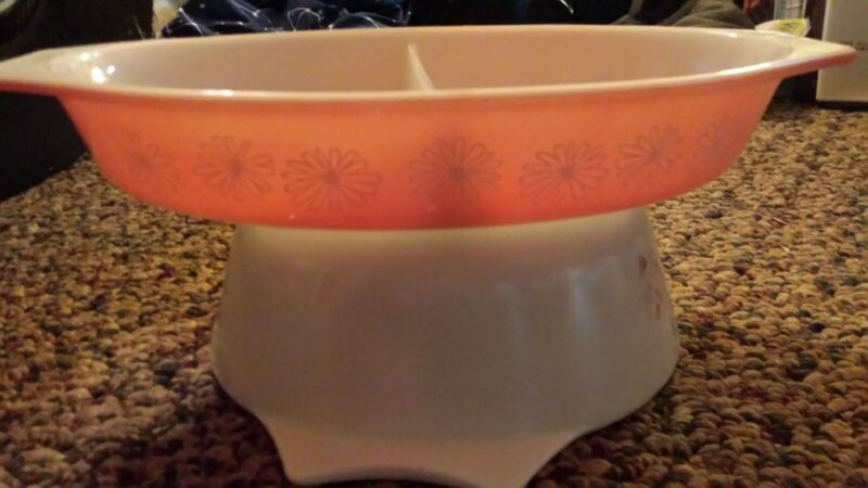 Vintage Pyrex Pink Daisy 1 1/2 Qt Divided Casserole Dish