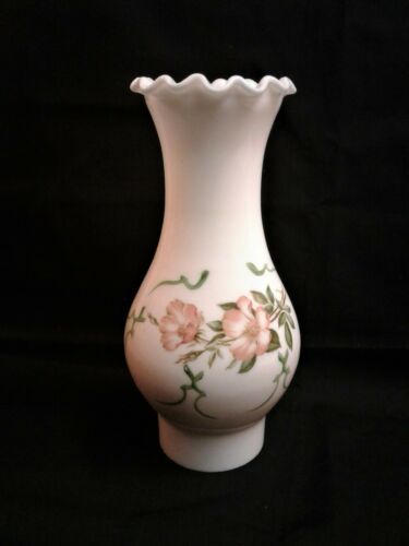 Vintage Milk Glass Hurricane Lamp Chimney Floral Flowers