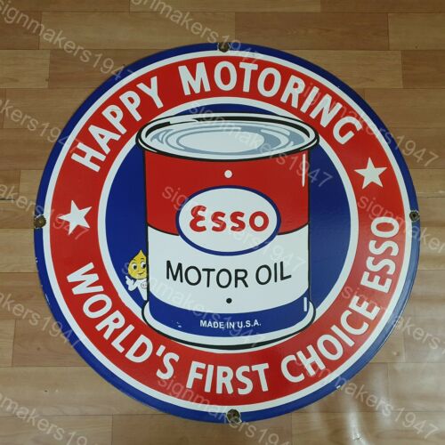Title (ebay affiliate link): ESSO HAPPY MOTORING PORCELAIN ENAMEL SIGN 30 INCHES ROUND