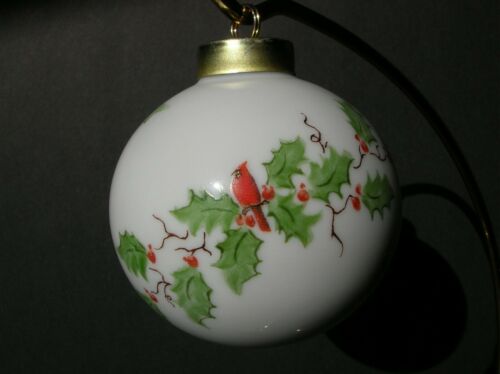 Title (ebay affiliate link): vintage hand painted milk glass Christmas ornament holly and red bird